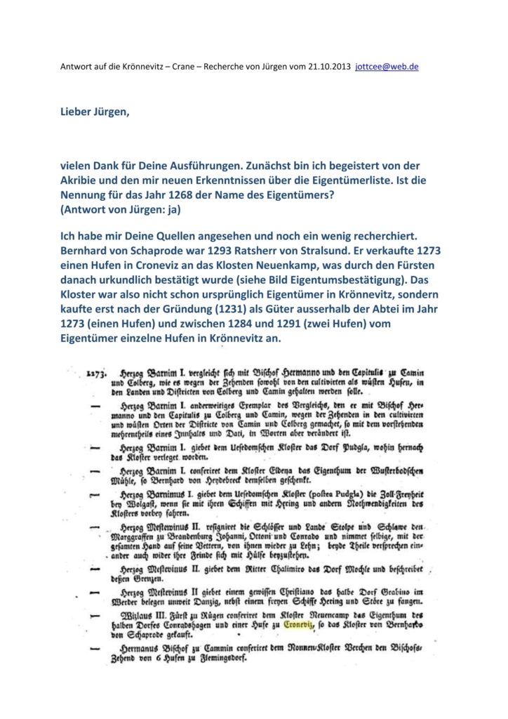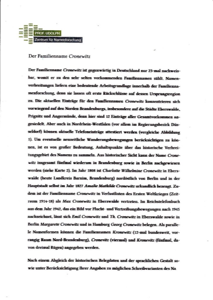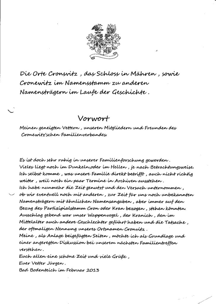 Auch gibt es ganz unterschiedliche Schreibweisen des Cronewitz’schen Namensstamms. Diese sind unter Anderem: