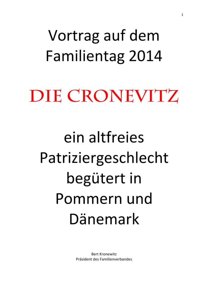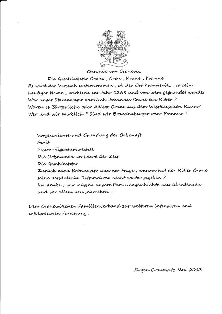 Die intensive Familienforschung des Cronewitz’schen Familienverbands haben wir nach bestem Wissen und Gewissen betrieben. Diese hat folgenden Familienursprung ergeben:
